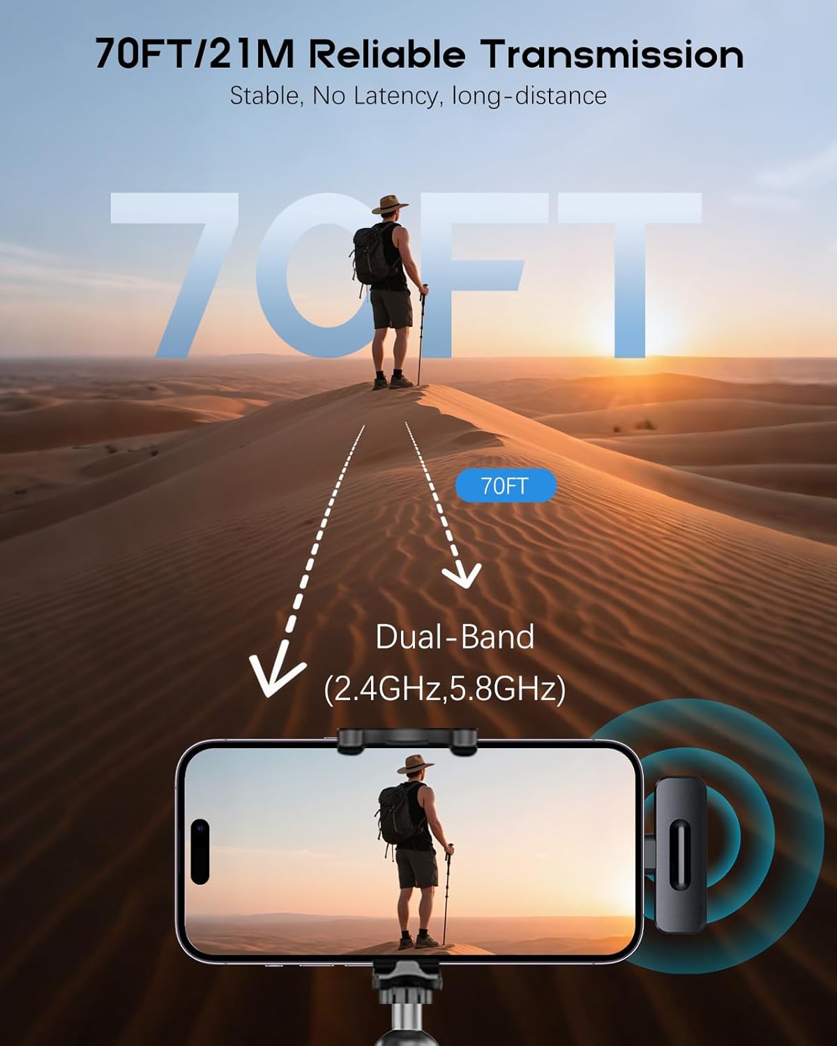 - 360° Clip & Universal Use: The rotating clip positions this lapel microphone wireless perfectly on collars, shirts, hats, or gear. Capture perfect audio for YouTube, TikTok, interviews, or vlogs from any angle with this essential wireless microphone for iphone.